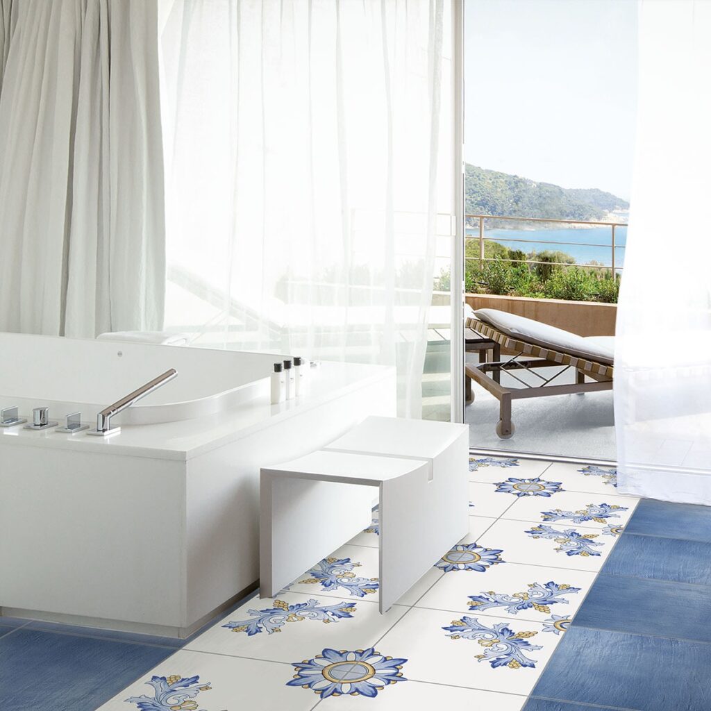 La collezione Vietri si ispira alla tradizione delle ceramiche decorate a mano, tipiche della città di Vietri sul Mare, situata sulla splendida Costiera Amalfitana. Questa tradizione artistica, risalente a secoli fa, è caratterizzata da colori vivaci e disegni intricati che raccontano la storia e la cultura del luogo. Le piastrelle della collezione Vietri catturano l’essenza di questa arte, portando nei tuoi spazi un pezzo di storia e un tocco di eleganza senza tempo.